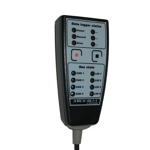 The DLX-MUXDIAG-II is a compact data logger which is particularly well suited to "on road" applications It is used to log the data flowing simultaneously on 1 CAN High Speed or Low Speed link, 1 CAN HS link, 2 ISO9141 links, 2 LIN links and on 2 ANA/binary inputs. Supplied with a memory capacity of 16GB (expandable), a wired remote control and the Exxotest Data Logger Control app for Windows OS, used to configure the data logging and restoral sequences.